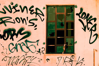 Walls like decaying canvases, full of painted words